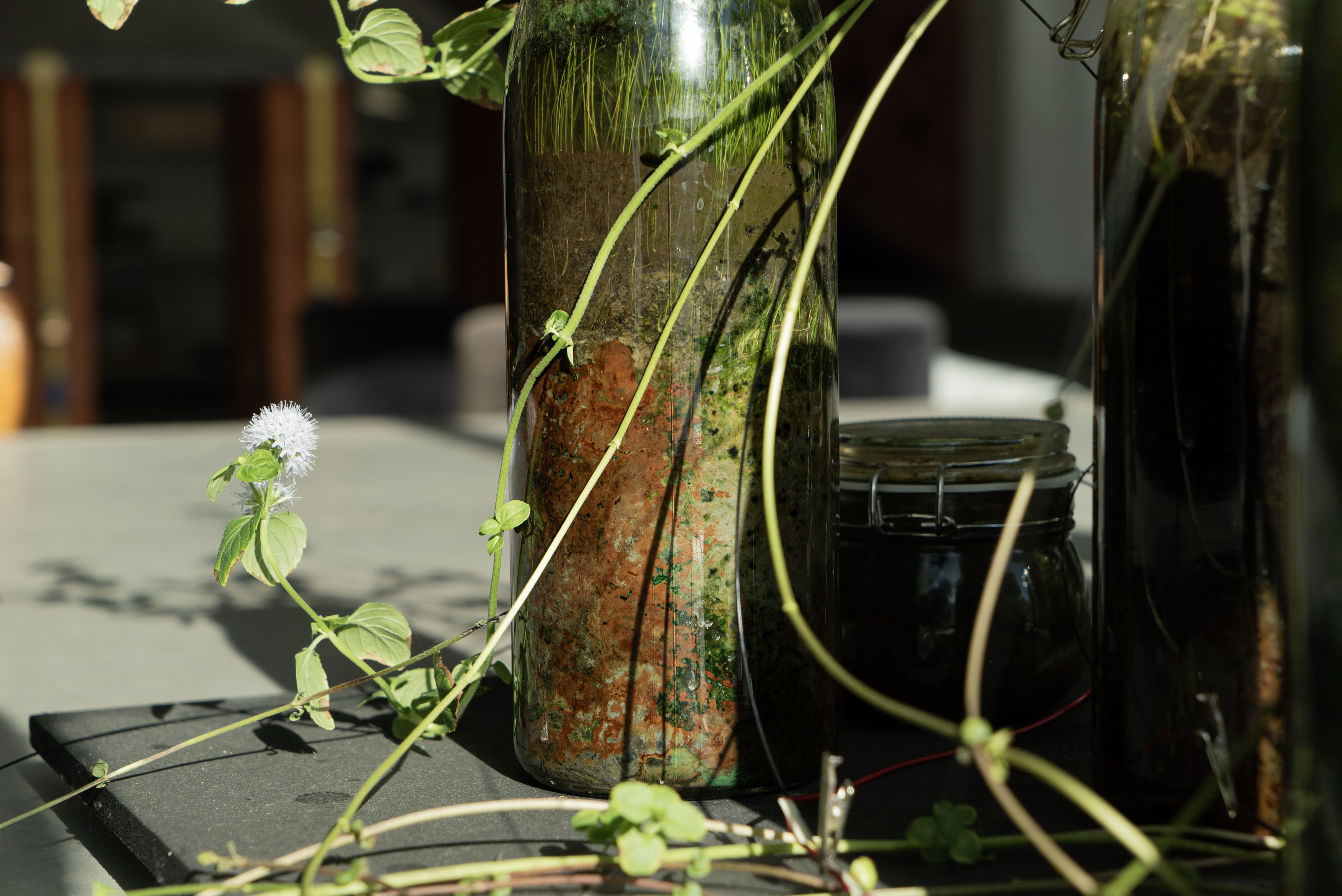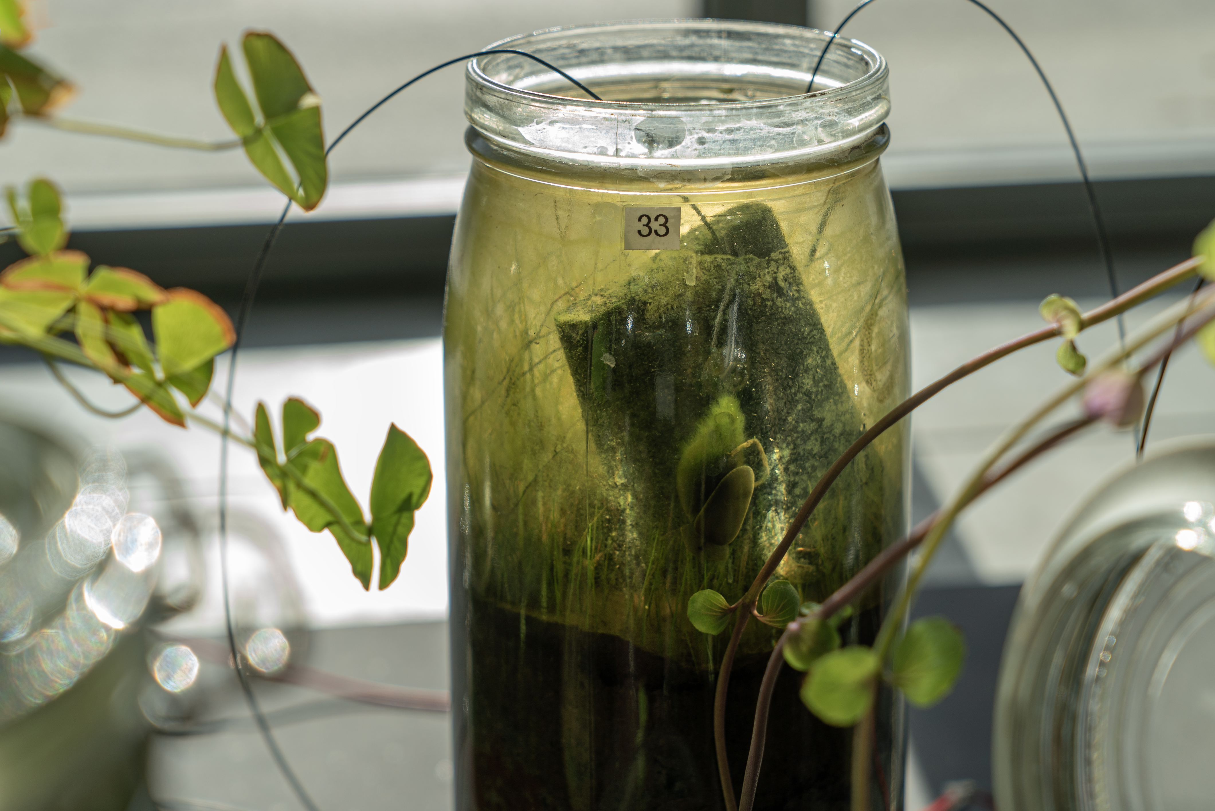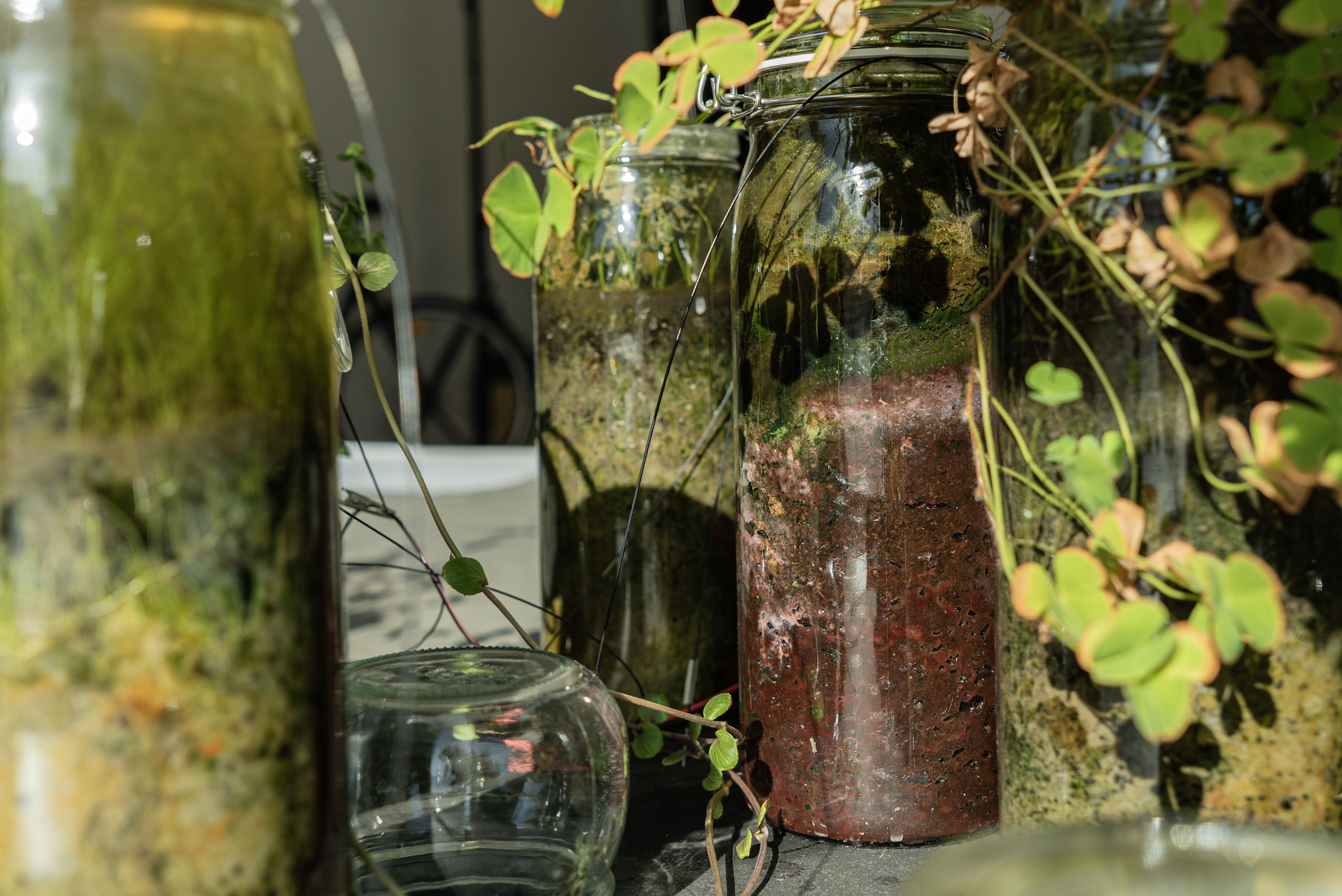 The second installation with glass jars were made and installed at iMAL, Brussels, for the exhibition ‘I am vertical(But I would rather be horizontal)’ July-September 2025.